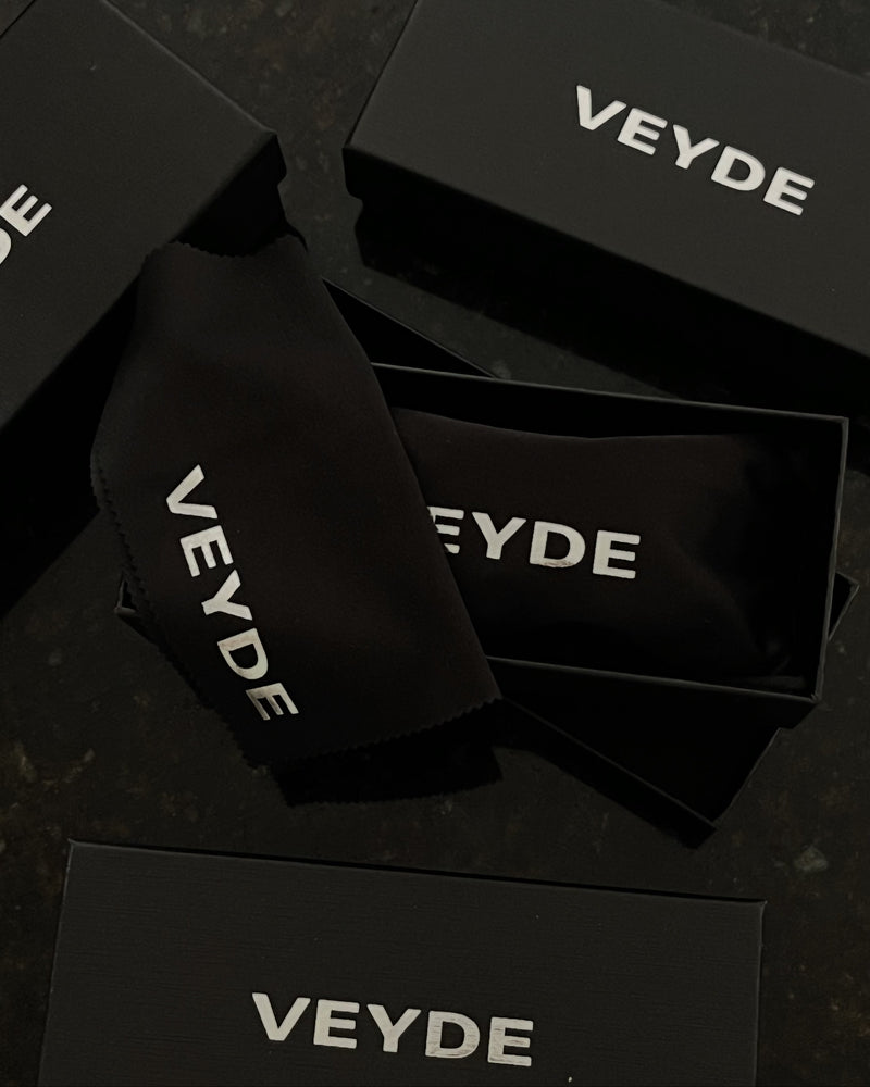 Each pair arrives in our signature VEYDE box, complete with a silk glasses sleeve and matching wipe for effortless care.